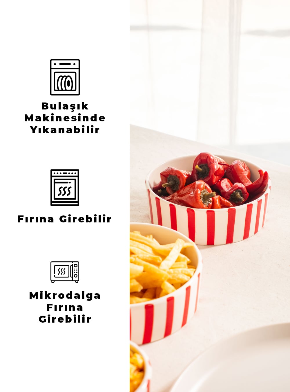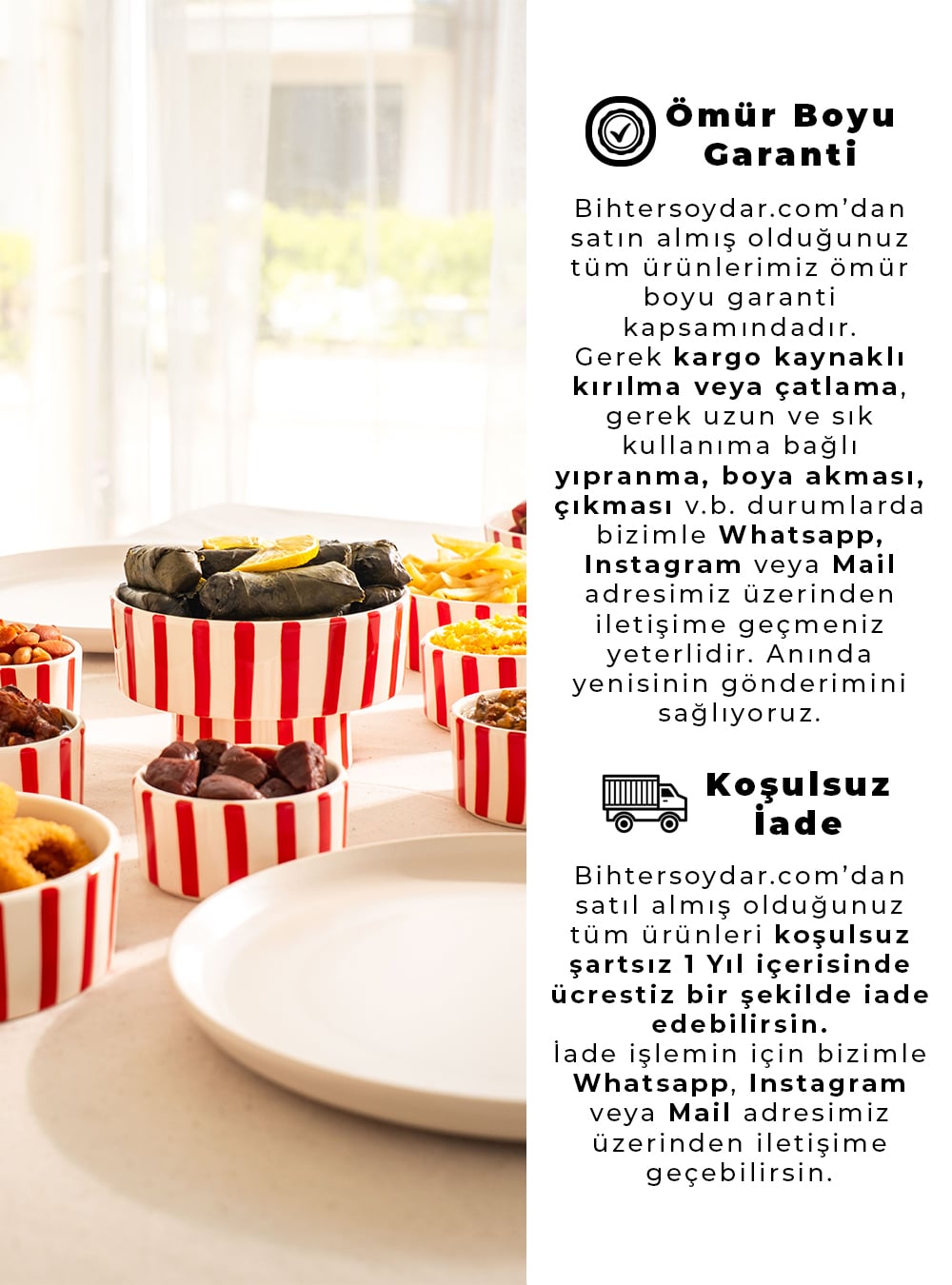 6 Adet 19cm Tabak, 4 Adet Sunum Kasesi, 6 Adet Mini Kaseden oluşmaktadır.